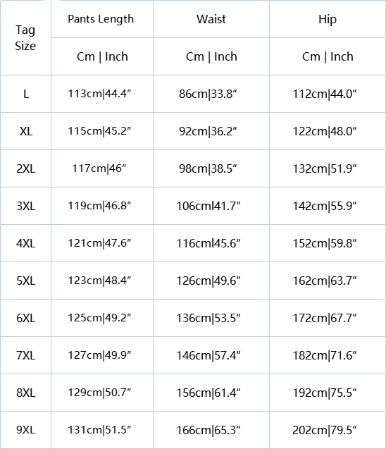 , please pay attention to our size chart and compare it with your own fitted pants. If you want a looser effect, it is recommended to choose 1-2 sizes larger.